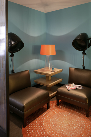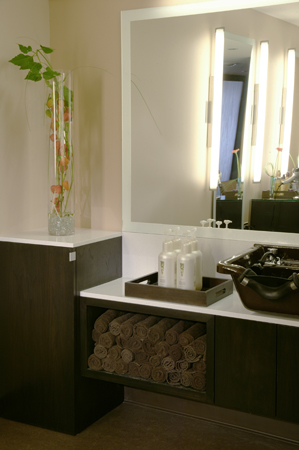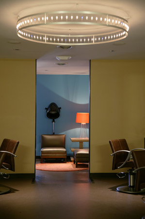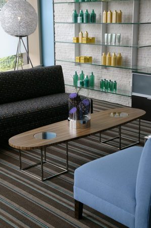 Valerium Salon embodies the spirit of the philosophy, “All things evolve.” From conception to fruition, the guiding force of the Italian-inspired, Northwest flavored interior was to create, in patrons, a spa-like feel: relaxed and beautiful with clean lines and bursts of color. Developed by local Interior Designer, Mark Haidle, highlights include cabinetry by local artisan Brian Gualtieri, hand-chiseled limestone tile from Ann Sacks, cast resin floor-to-ceiling dividers embedded with beach grass, and a Bruck flight ring incandescent chandelier appointed with clear and cobalt lamps.